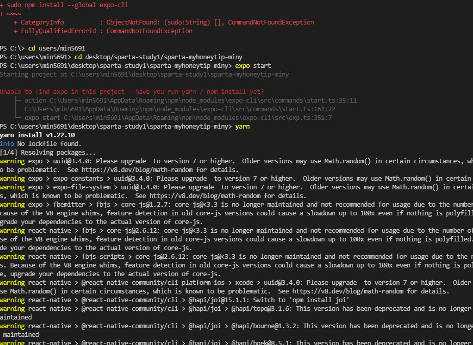 구글 검색으로 터미널에 yarn이라고 명령내리면 된다기에 했더니 해결됐다.