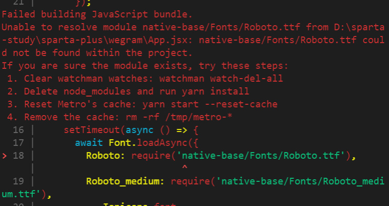 Unable to resolve module native-base/Fonts/Roboto.ttf from D:\sparta-study\sparta-plus\wegram\App.jsx: native-base/Fonts/Roboto.ttf could not be found within the project.